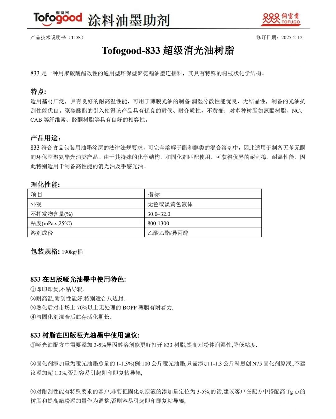 Tofogood-833超级哑光油树脂